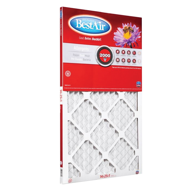 BestAir Air Filter, MPR Rating: 1000 to 1200, 11 MERV, 95 % Filter Efficiency, 14 in Length, 25 in Width, 1 in Thickness, Suitable for: 1 in Residential Units