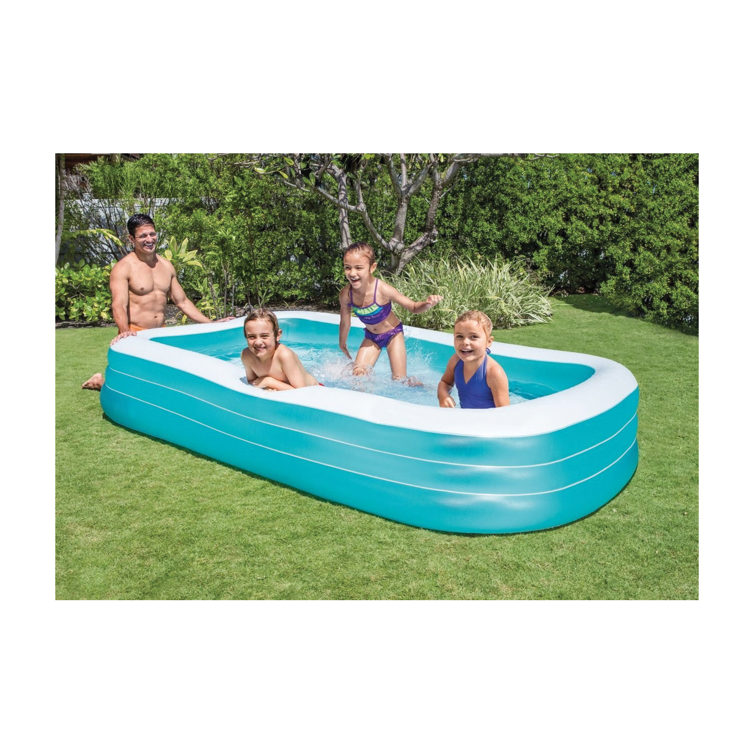 Make a splash this summer with the INTEX Swim Center™ family pool. The wide side walls allow for maximum play room and three air chambers, each with a combo valve, make inflation and deflation a breeze. Your family and friends can keep cool and enjoy this fun pool, all summer long.