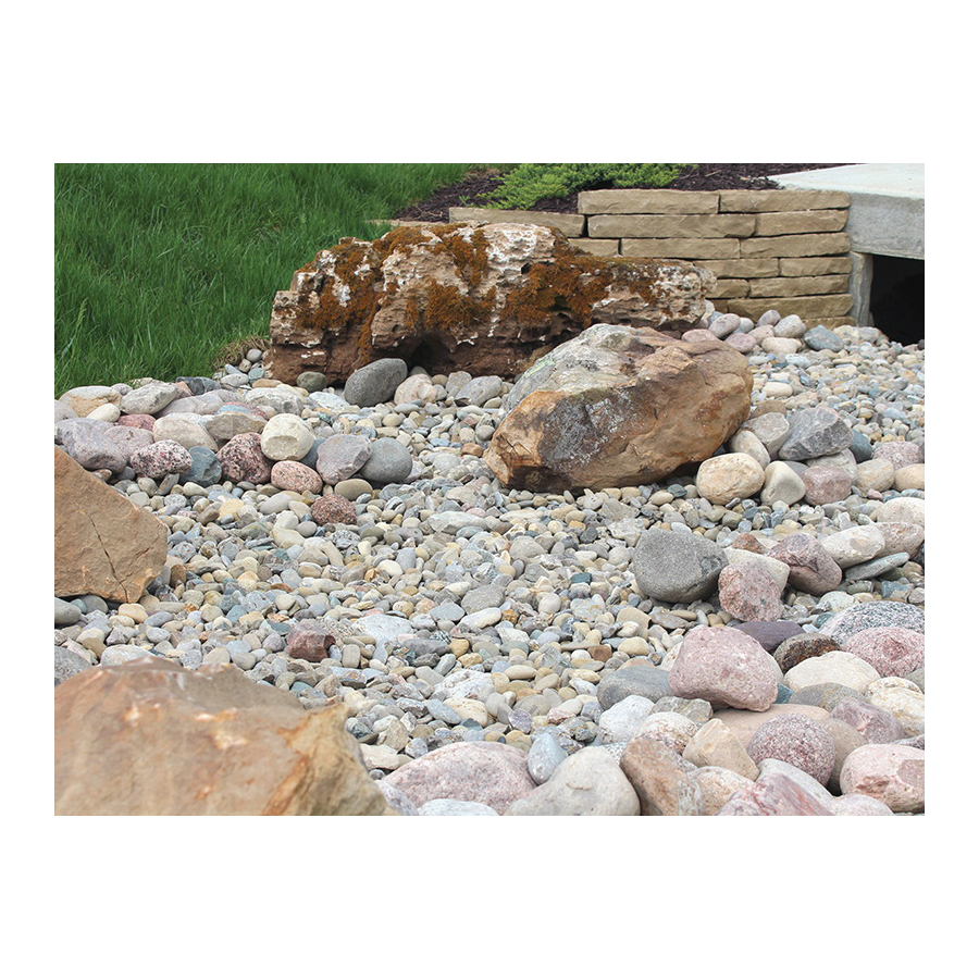 Iowa rainbow is a multi-colored decorative gravel with a variety of gold, burgundy, blue and white rocks. Sold in a 0.5 cu-ft bag and in bulk. Average size is 1-1/2 in.